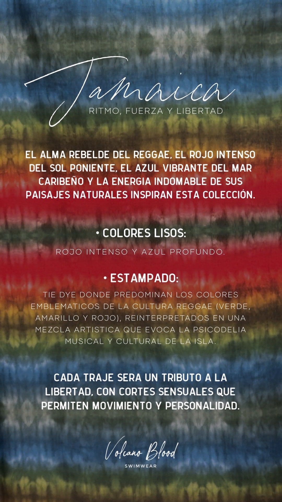 Inspiración: El alma rebelde del reggae, el rojo intenso del sol poniente, el azul vibrante del mar caribeño y la energía indomable de sus paisajes naturales. -